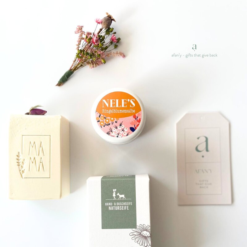 Alle hier erwähnten Produkte sind von Hand in der Schweiz von lokalen Handwerkern und kleinen Ateliers hergestellt. Das gewisse Extra: die handgemachte Ringelblumensalbe ist ein inklusives Produkt, das von der HPV Uzwil-Flawil in einer geschützten Werkstatt hergestellt wurde.