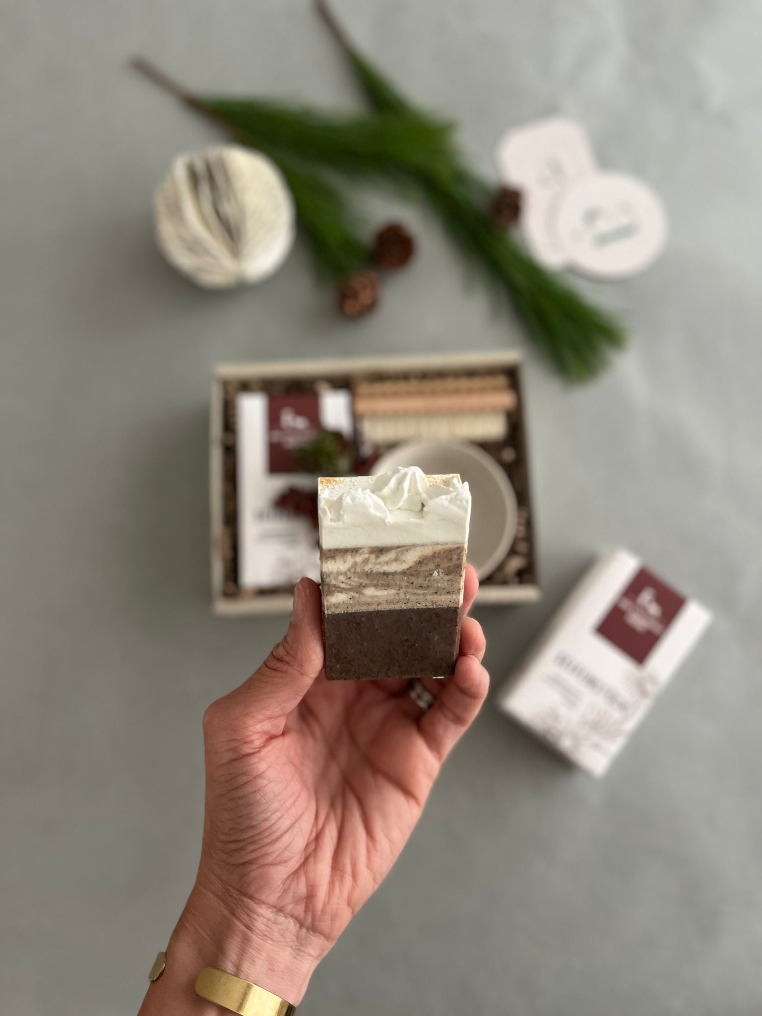 - un savon fait main dans les Alpes suisses, créé spécialement pour neutraliser les odeurs de cuisine comme celles des oignons, de l'ail et du poisson.